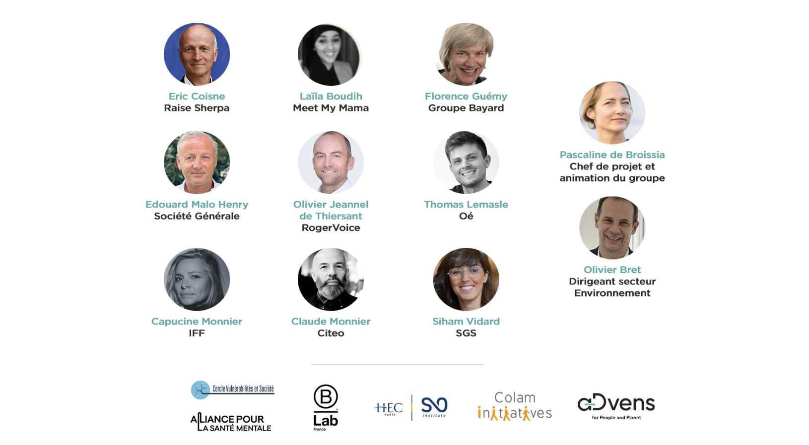 Le groupe de travail a été conduit avec le soutien du fonds de dotation Advens for People and Planet, et en partenariat avec B Lab France, HEC Center for Purpose & Profit, le Mouvement Impact France, l’Alliance pour la Santé Mentale ainsi que le Cercle Vulnérabilités et Société.